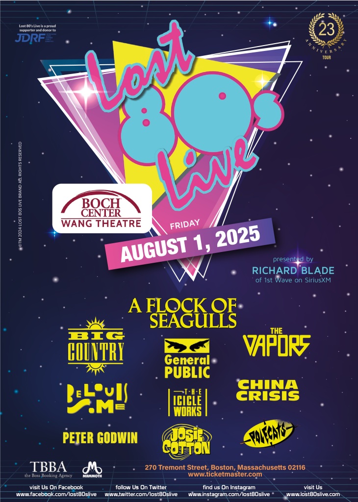 Take, for instance, Lost 80’s Live, which has been going on for well over 20 years and bills itself as North America’s longest-running retro music tour. Headlined by A Flock of Seagulls, the 2025 edition cabbage patches into The Wang this Friday (August 1), with support from a laundry list of new wave one and two-hit wonders like The Vapors (“Turning Japanese”), Big Country (“In a Big Country”), General Public (“Tenderness”), and many more. And if you’re going to throw an ‘80s party, there’s no better host than UK export Richard Blade, who came up introducing the masses to all those artists in the first place as a DJ at the iconic Los Angeles radio station KROQ beginning in 1982 and continues as a torchbearer on SiriusXM’s 1st Wave station six days a week.